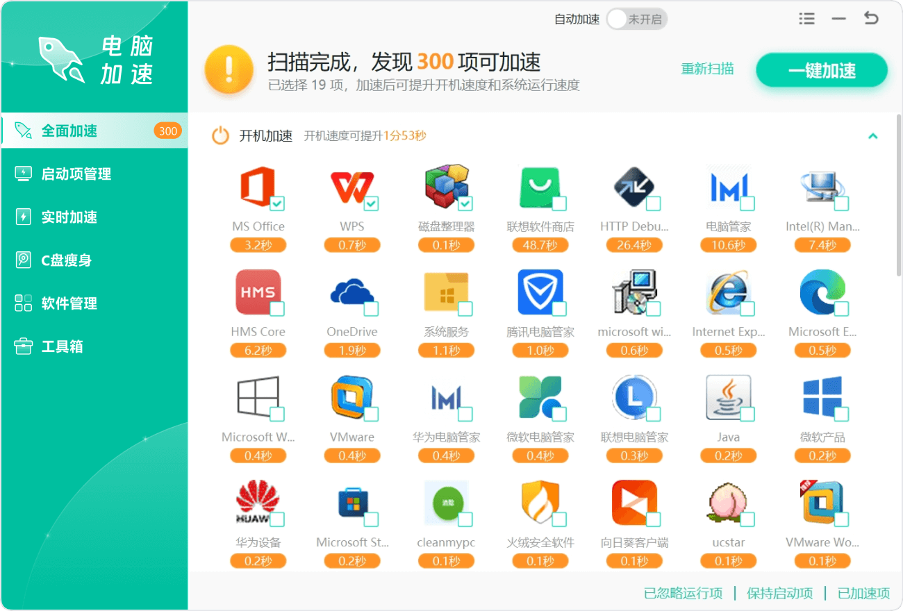 57个加速项平均每天帮用户处理